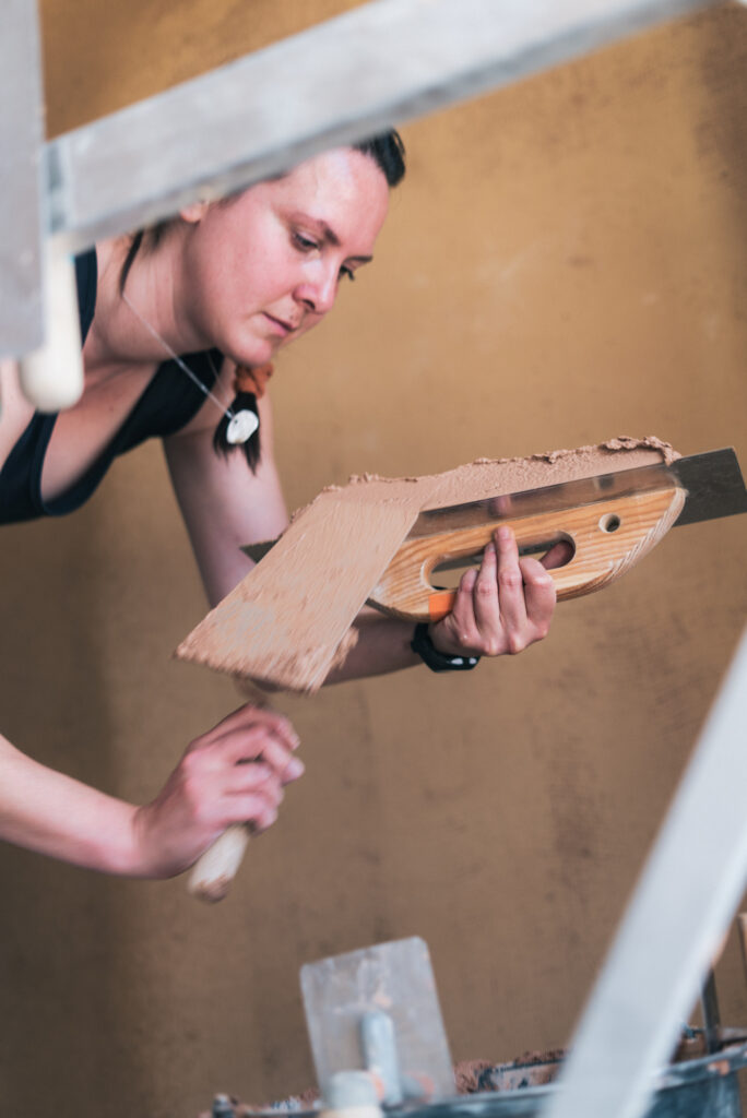 Architecte diplômée et artisane basée à Bruxelles, Arianna Fabrizi de Biani est spécialisée dans la mise en œuvre de la terre crue. En 2022, elle fonde ACRUMA pour promouvoir l’usage de matériaux naturels, offrant un accompagnement technique aux architectes et artistes pour l’application d’enduits à l’argile et à la chaux. Alliant savoir-faire traditionnels et projets contemporains, elle maîtrise également des techniques décoratives comme le sgraffite, le pochoir et le bas-relief, qu’elle applique aussi bien dans la rénovation que dans la restauration du patrimoine.